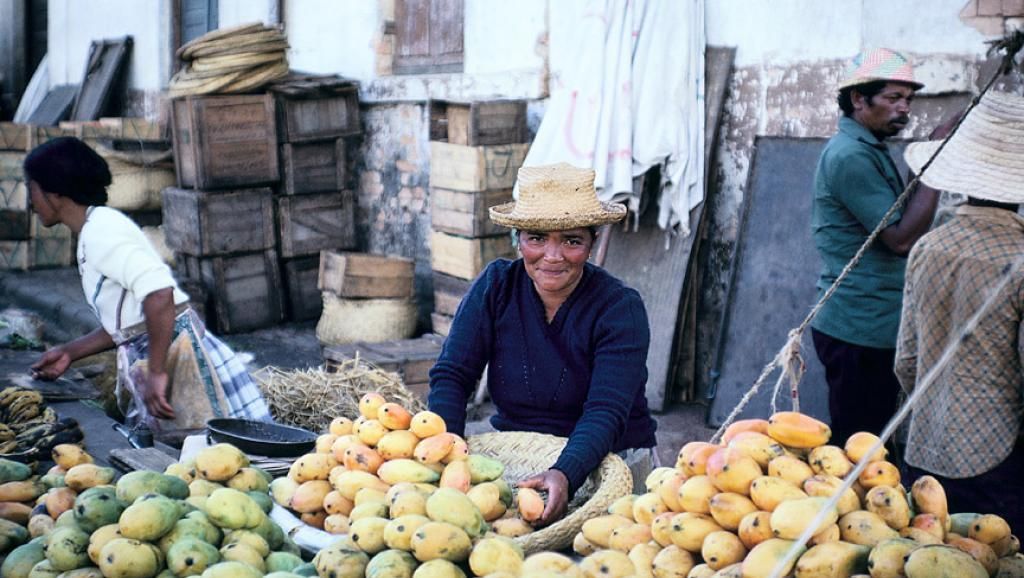 Un marché de fruits et légumes à Madagascar, en juillet 2008.